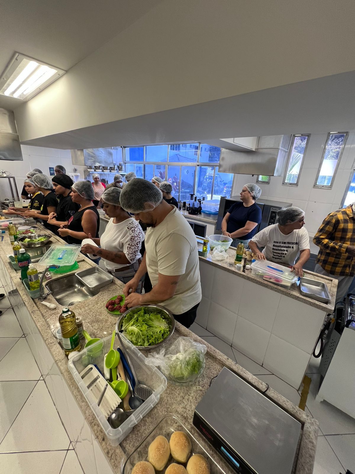 A participação ocorre mediante agendamento prévio, possibilitando a organização do treinamento conforme a necessidade do estabelecimento.